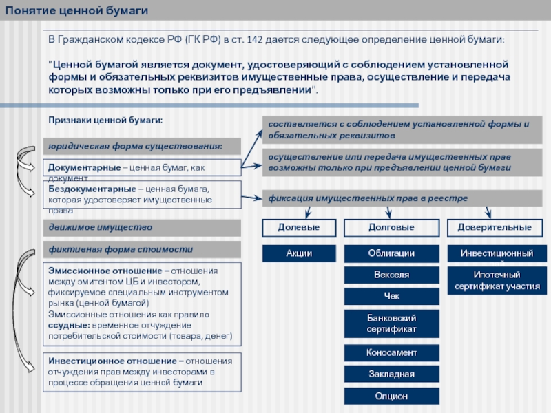 В соответствии со ст. 912ГК РФ к ценным бумагам относятся: