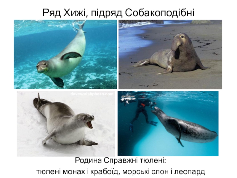 Слайд 169Ряд Хижі, підряд Собакоподібні
