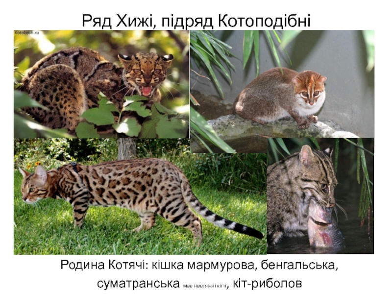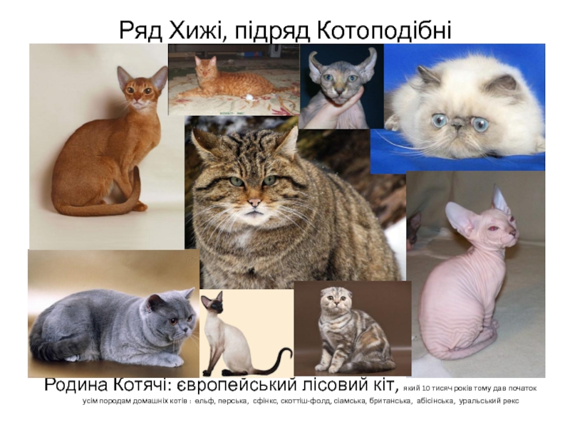 Слайд 194Ряд Хижі, підряд Котоподібні