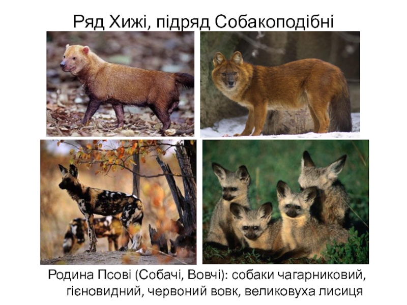 Слайд 182Ряд Хижі, підряд Собакоподібні