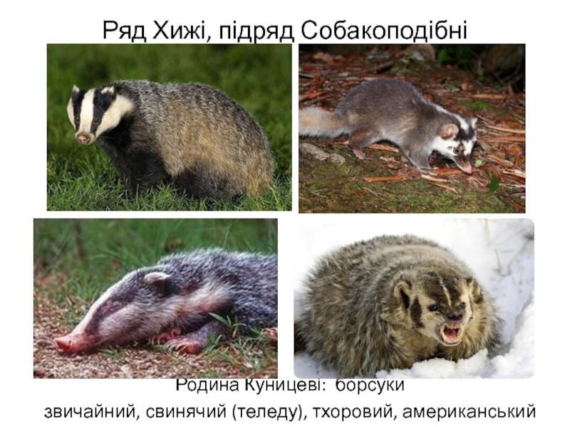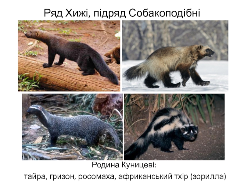 Слайд 170Ряд Хижі, підряд Собакоподібні