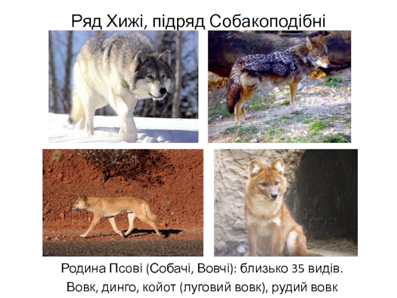 Слайд 183Ряд Хижі, підряд Собакоподібні