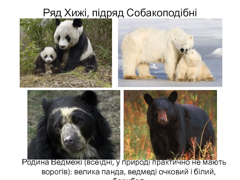 не мають ворогів): велика панда, ведмеді очковий і білий,барибал