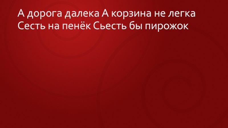 А дорога далека А корзина не легка  Сесть на пенёк Сьесть бы пирожок