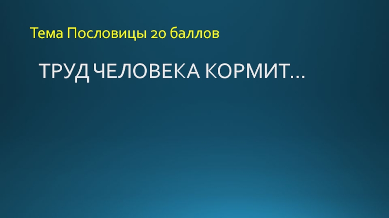 Тема Пословицы 20 балловТРУД ЧЕЛОВЕКА КОРМИТ…