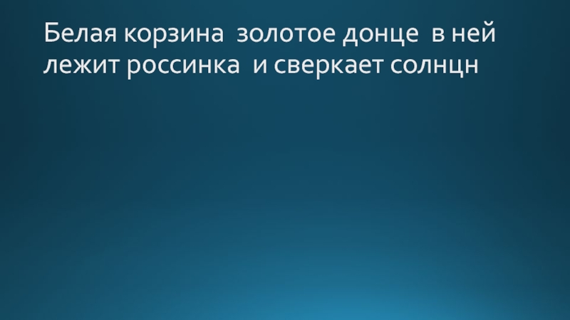 Белая корзина золотое донце в ней лежит россинка и сверкает солнцн