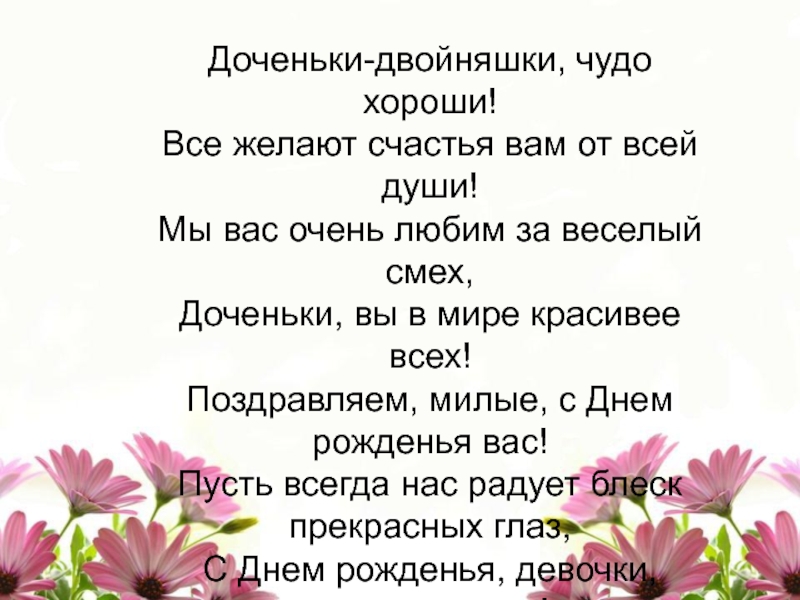 Слайд 14Доченьки-двойняшки, чудо хороши!