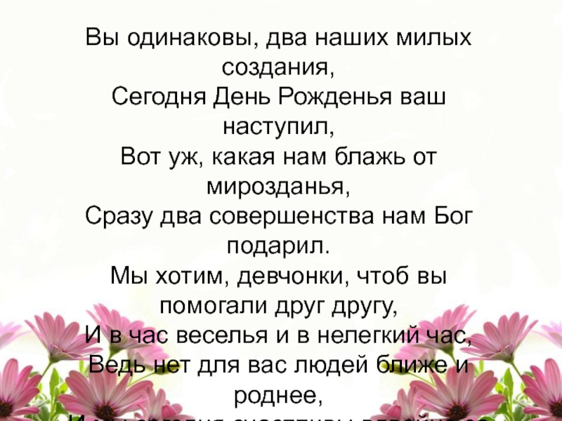 Слайд 4Вы одинаковы, два наших милых создания,