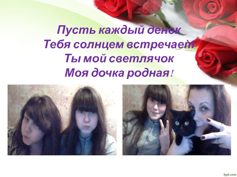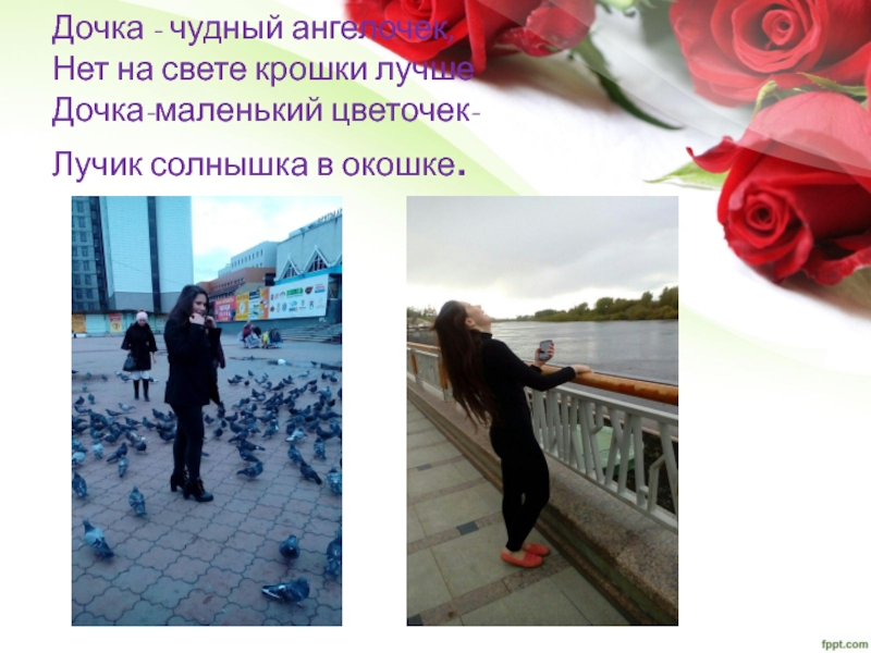 Слайд 15Дочка - чудный ангелочек, Нет на свете крошки лучше Дочка-маленький цветочек- Лучик солнышка