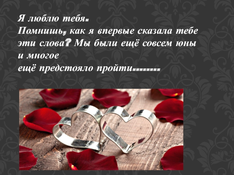 Я люблю тебя.Помнишь, как я впервые сказала тебе эти слова? Мы были ещё совсем юны и многое ещё предстояло пройти……..