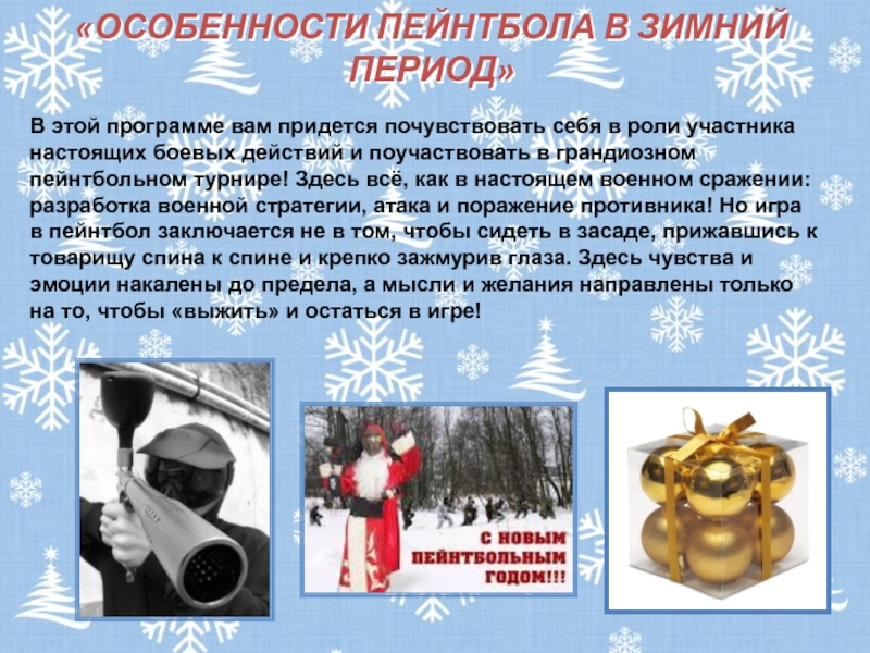 Слайд 10«ОСОБЕННОСТИ ПЕЙНТБОЛА В ЗИМНИЙ ПЕРИОД»