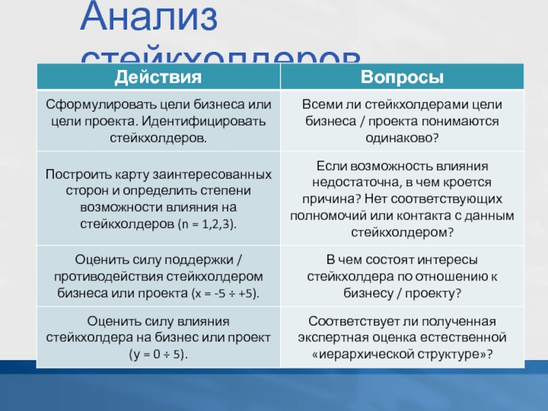 Определите перечень стейкхолдеров (групп влияния) и заказчика проекта