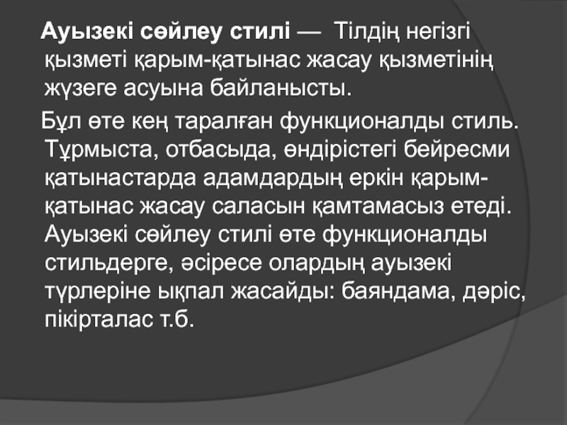 Слайд 4 Ауызекі сөйлеу стилі — Тілдің негізгі қызметі қарым-қатынас жасау