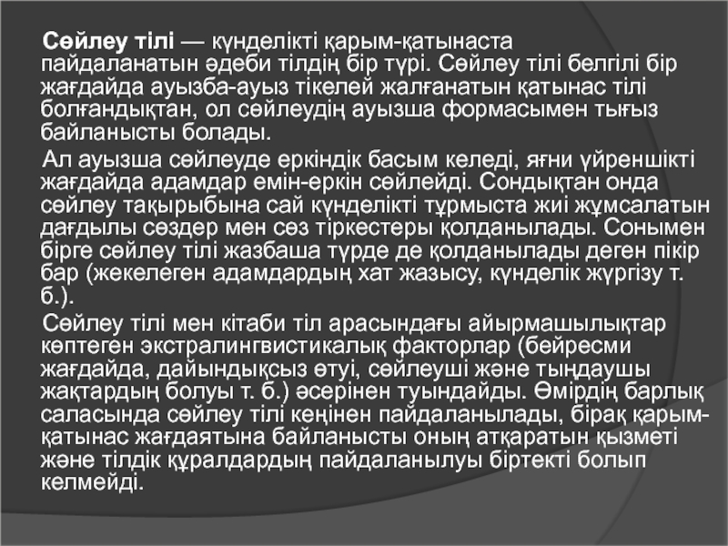 Сөйлеу тілі — күнделікті қарым-қатынаста пайдаланатын әдеби