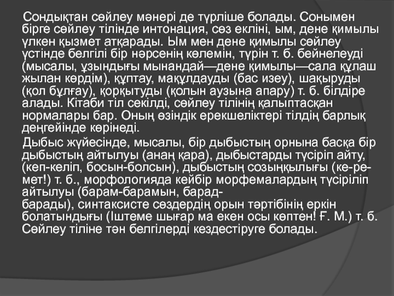 Слайд 3 Сондықтан сөйлеу мәнері де түрліше болады. Сонымен