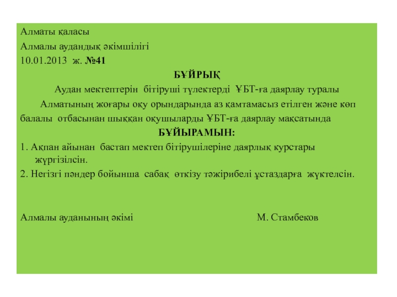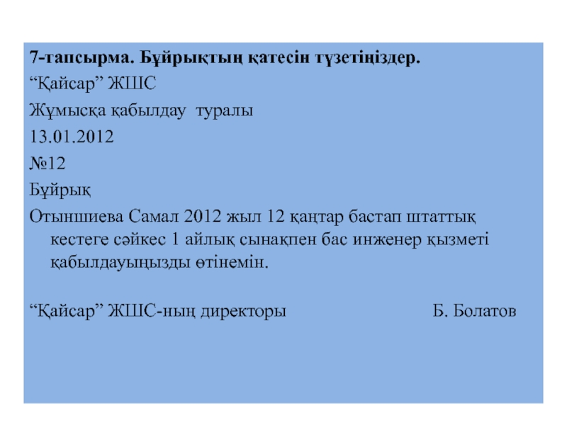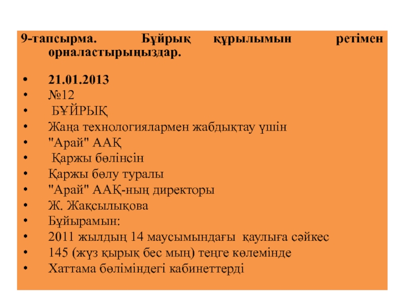 2-тапсырма. Бұйрық үлгілерімен танысыңыздар. Бұйрықтардың құрылымына, мәтініне назар аударыңыздар.