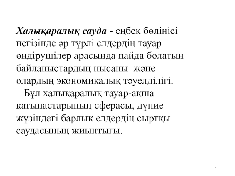 Слайд 2 Халықаралық экономикалық қатынастар дегеніміз халықаралық байланысатын және халықаралық еңбек