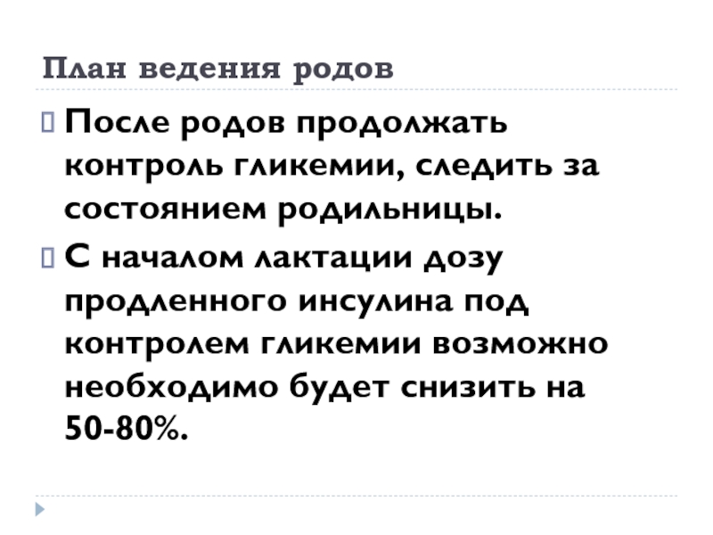 После родов продолжать контроль гликемии, следить за состоянием