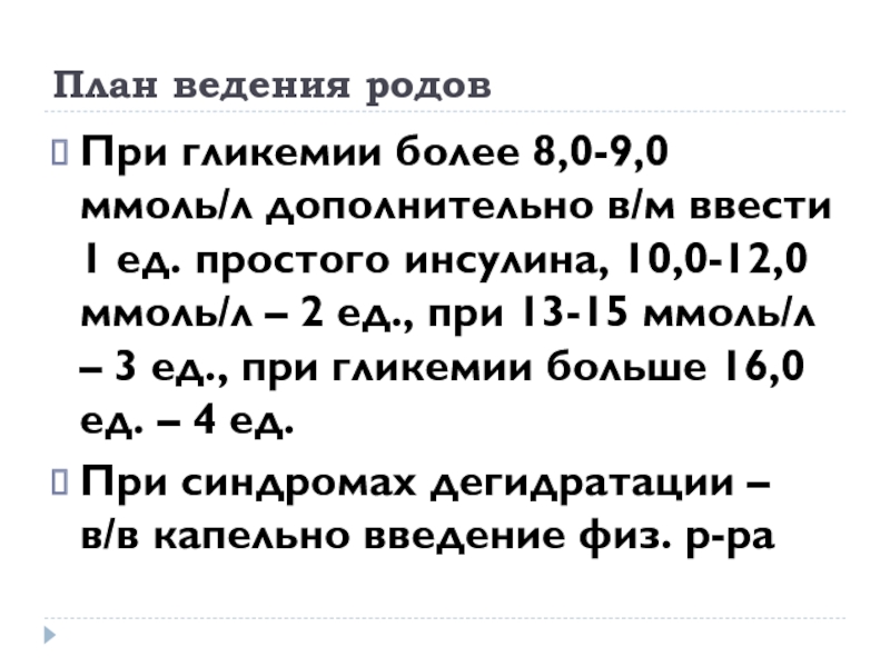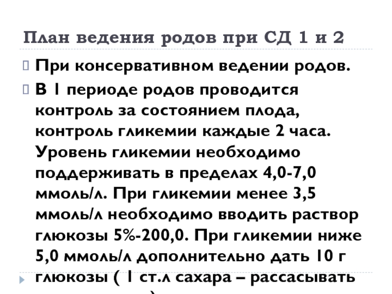Слайд 19План ведения родов при СД 1 и 2