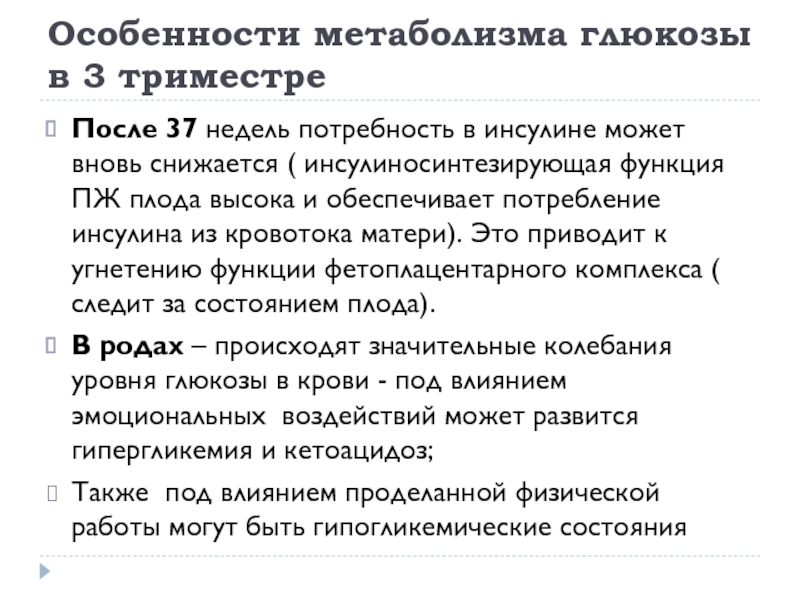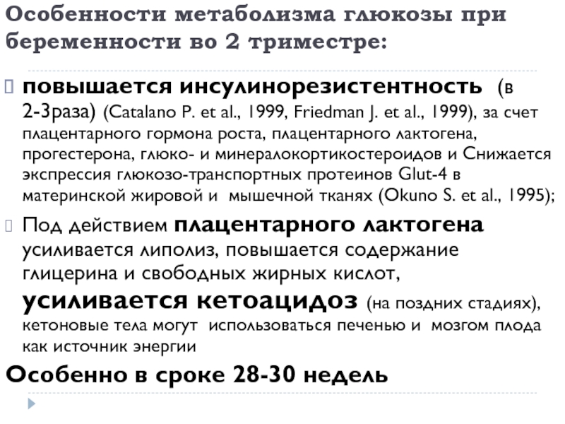 Слайд 9Особенности метаболизма глюкозы при беременности во 2 триместре: