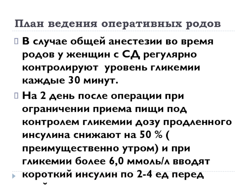 Слайд 24План ведения оперативных родов