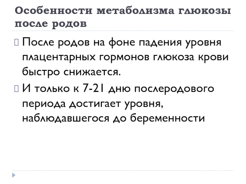 Слайд 11Особенности метаболизма глюкозы после родов