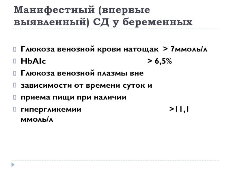 Слайд 14Манифестный (впервые выявленный) СД у беременных