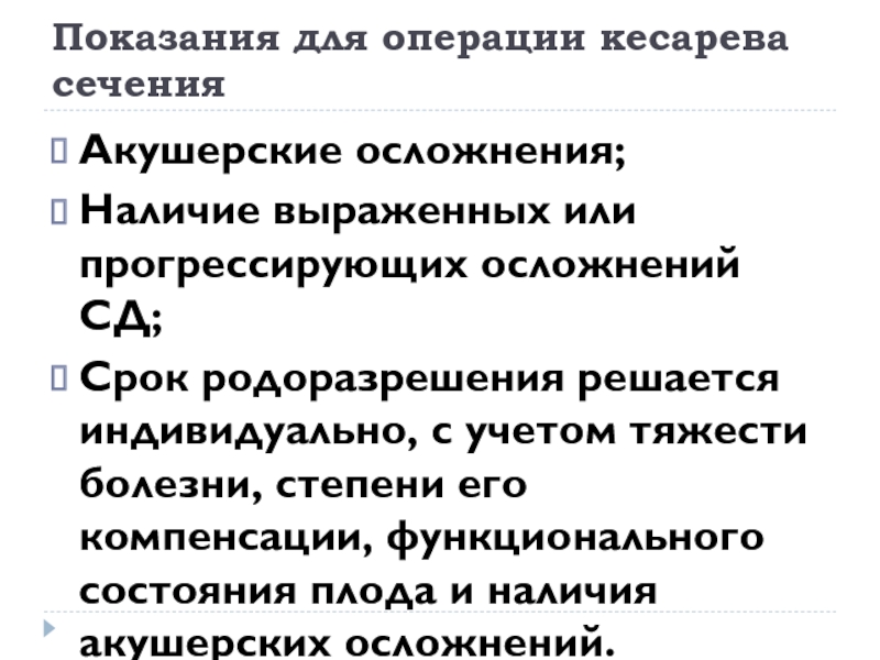 Слайд 18Показания для операции кесарева сечения