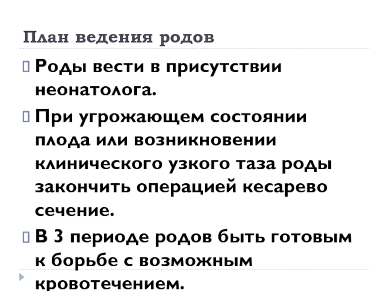 Слайд 22План ведения родов