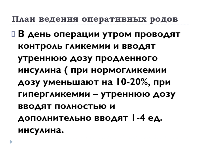 и вводят утреннюю дозу продленного инсулина ( при нормогликемии дозу