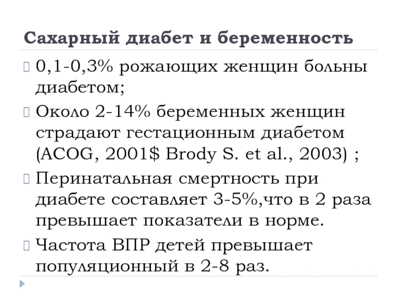 женщин страдают гестационным диабетом (ACOG, 2001$ Brody S. et al.,