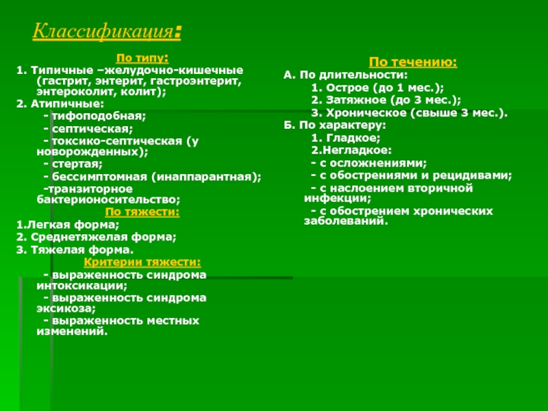 1. Типичные –желудочно-кишечные (гастрит, энтерит, гастроэнтерит, энтероколит, колит);