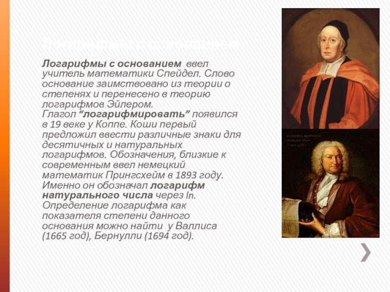 Слайд 9Логарифмы с основанием