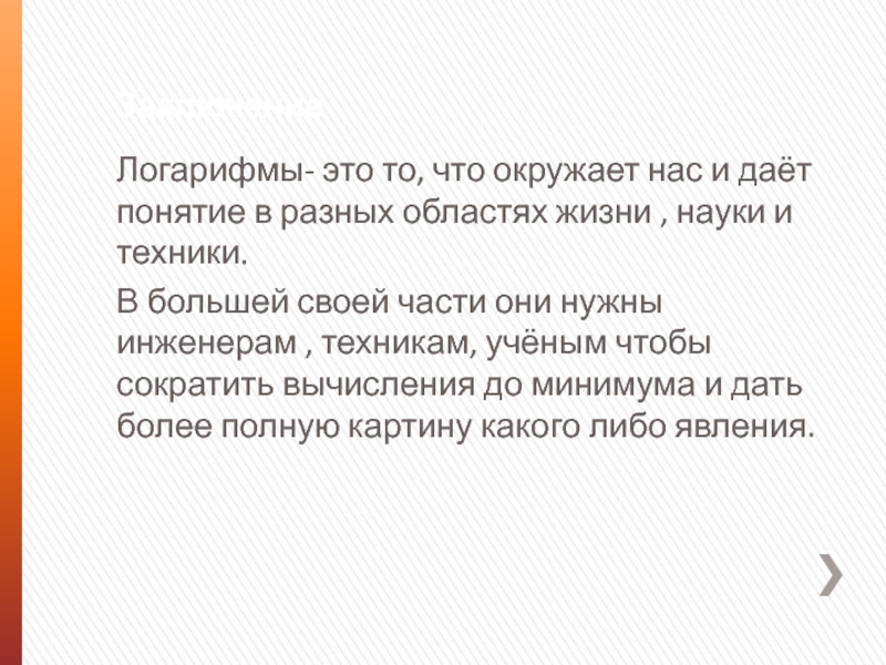 Логарифмы- это то, что окружает нас и даёт понятие в