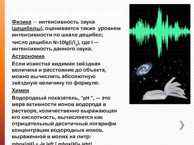 Физика — интенсивность звука (децибелы), оценивается также уровнем интенсивности по