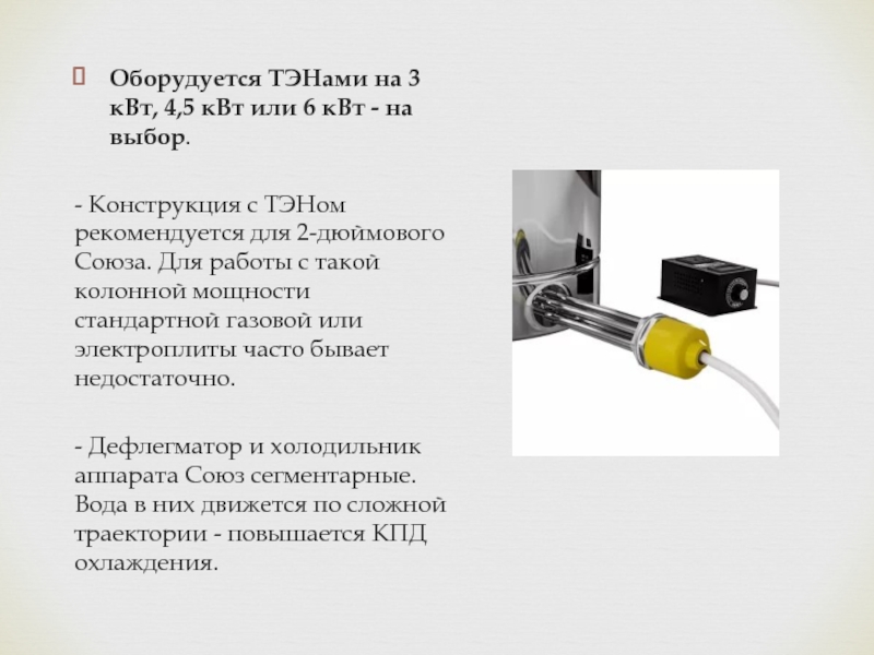 - Конструкция с ТЭНом рекомендуется для 2-дюймового Союза.