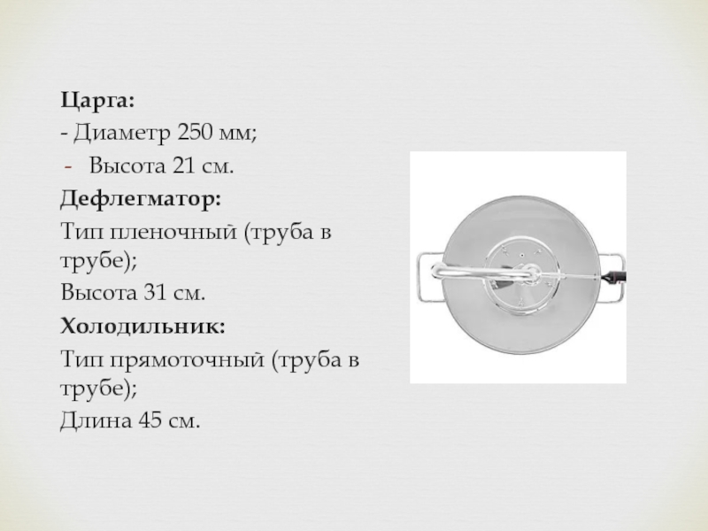 Слайд 3Царга: Диаметр 38 см, высота 45 см.