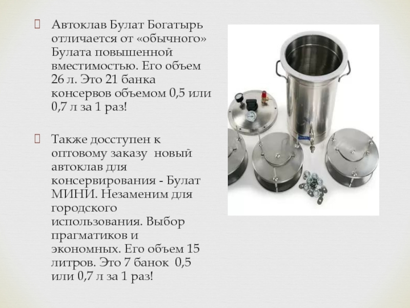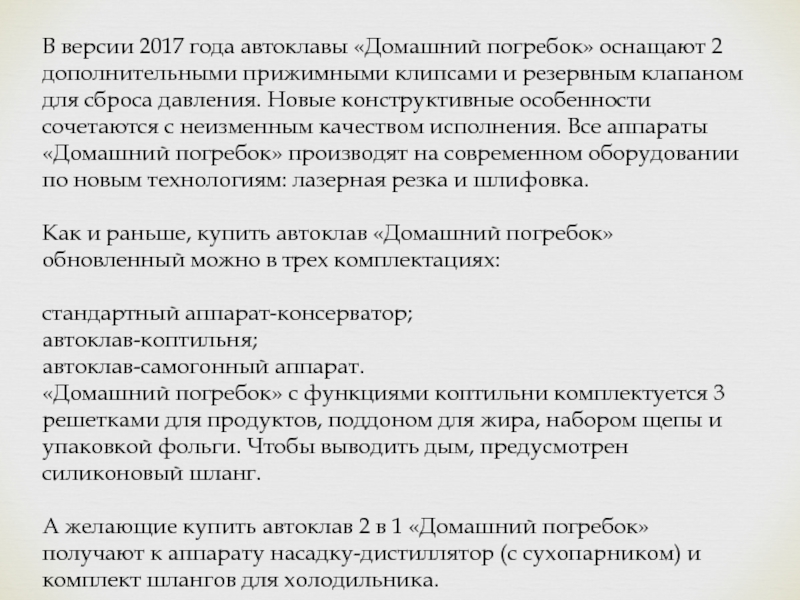 Слайд 80В версии 2017 года автоклавы «Домашний погребок» оснащают 2 дополнительными