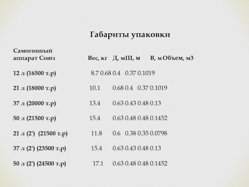 Союз Вес, кг Д, м Ш, м В, м Объем, м3