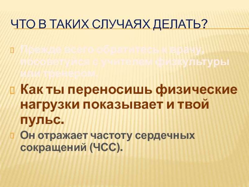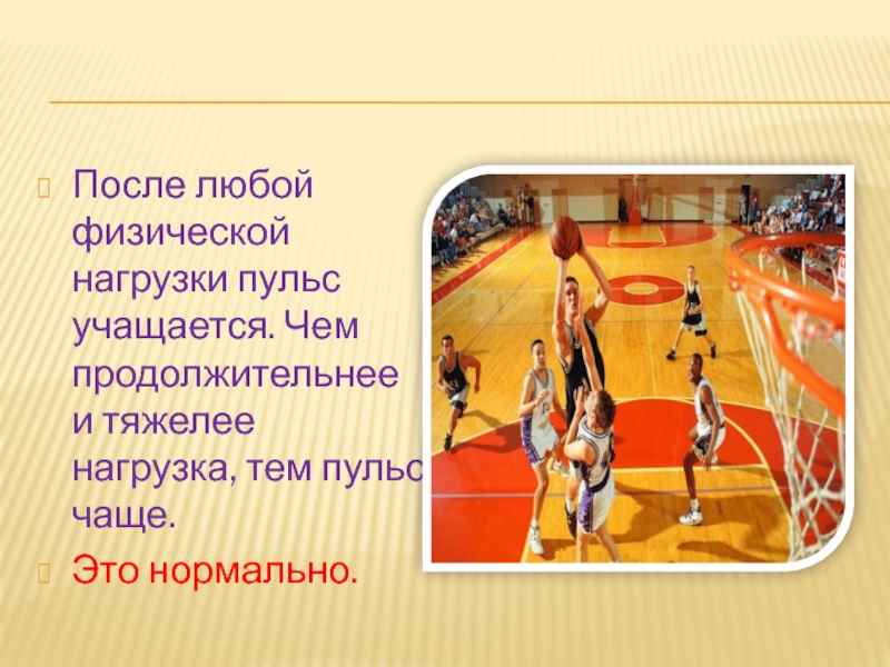 Слайд 10После любой физической нагрузки пульс учащается. Чем продолжительнее и тяжелее