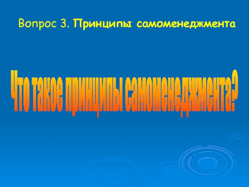 Самоменеджмент -это самоорганизация, умение управлять собой, руководить процессом управления в самом широком смысле слова – во времени, в пространстве, общении, деловом мире.