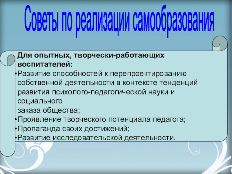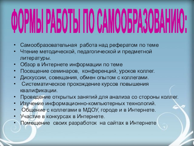 Изучение новых программ и педагогических технологий;
