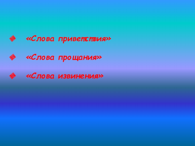 «Слова приветствия» «Слова прощания» «Слова извинения»