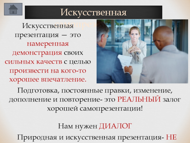 Природная самопрезентация является бессознательным процессом и не требует какой-либо подготовки и последовательности