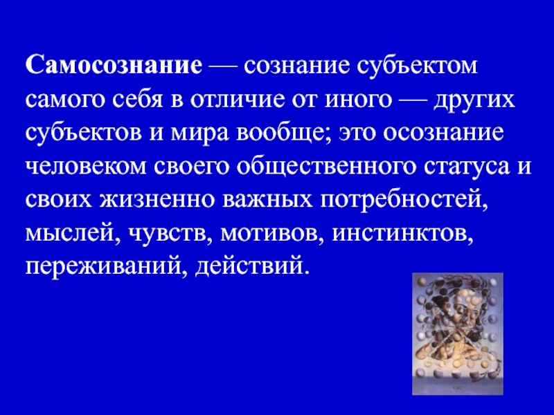 Слайд 3Самосознание — сознание субъектом самого себя в отличие от иного