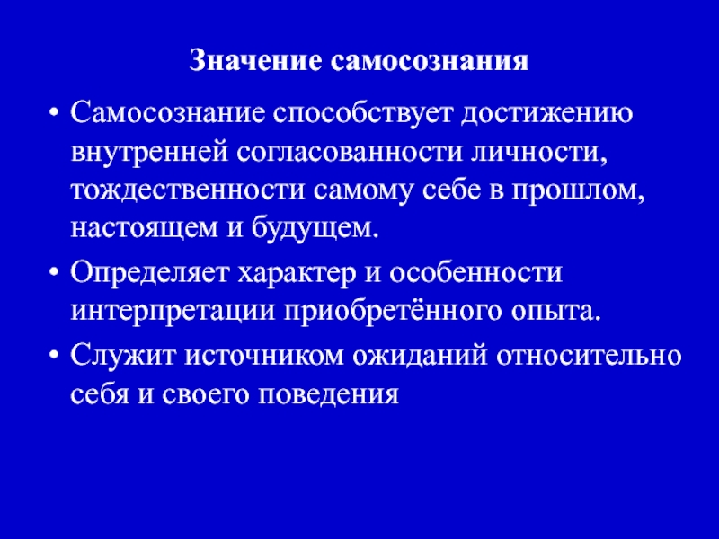 Самосознание способствует достижению внутренней согласованности личности, тождественности самому себе