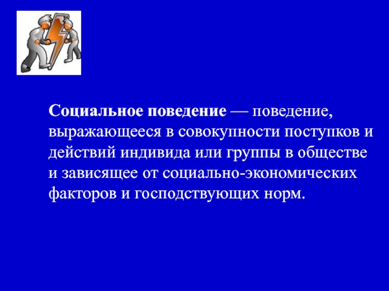 Слайд 14Социальное поведение — поведение, выражающееся в совокупности поступков и действий