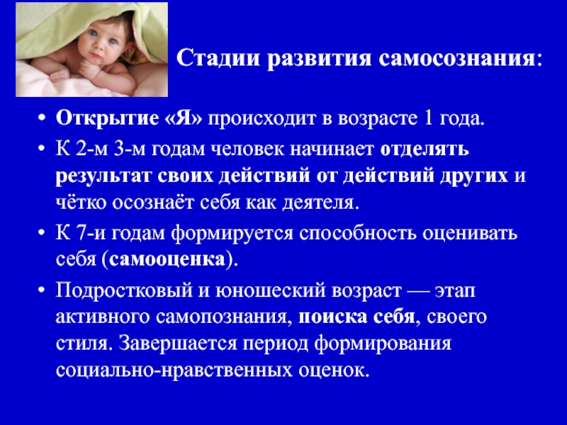 Подростковый и юношеский возраст — этап активного самопознания, поиска себя, своего стиля. Завершается период формирования социально-нравственных оценок.