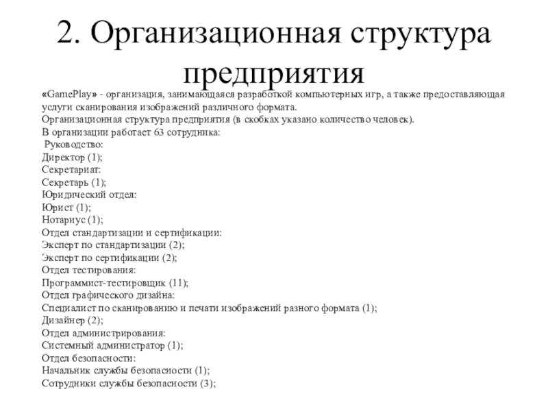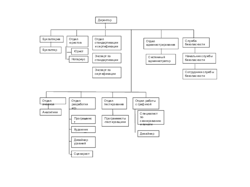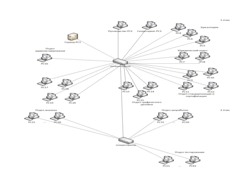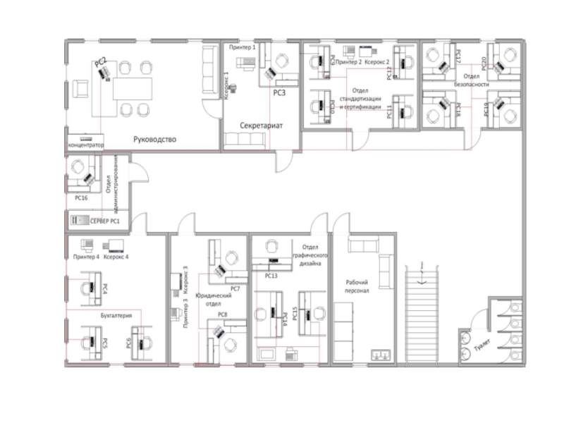 отдела графического дизайна, системного администратора и отдела безопасности и 1 сервер.