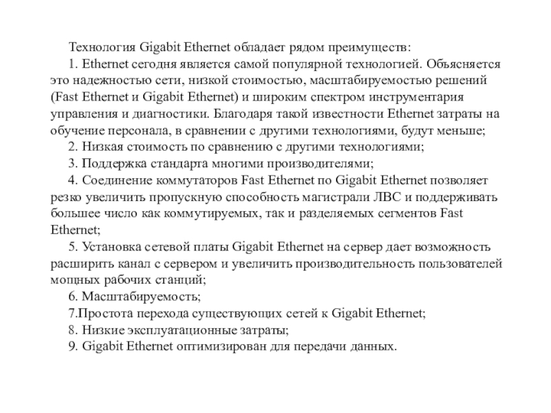 Слайд 15 Технология Gigabit Ethernet обладает рядом преимуществ: